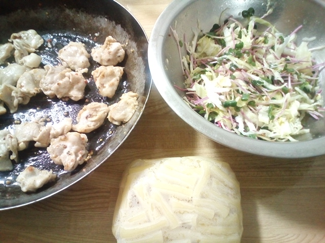 好き好きだと思うが、サラダは、あらかじめあえておき、
